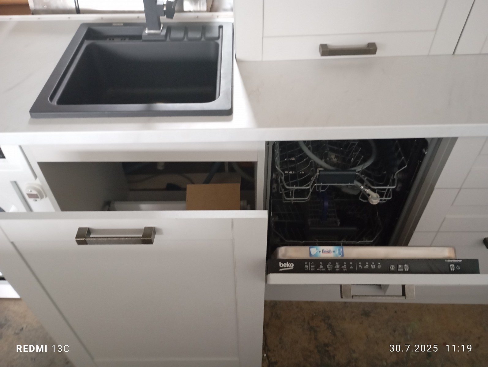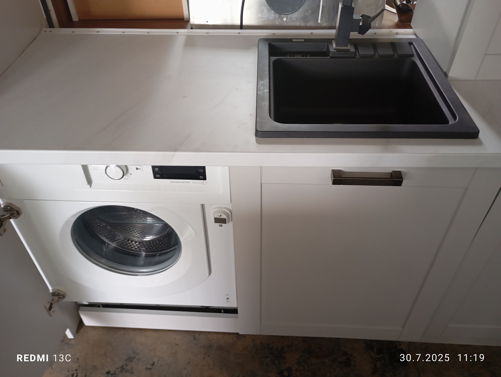 Krásná bílá kuchyňská linka se spotřebiči Whirlpool, Electrolux