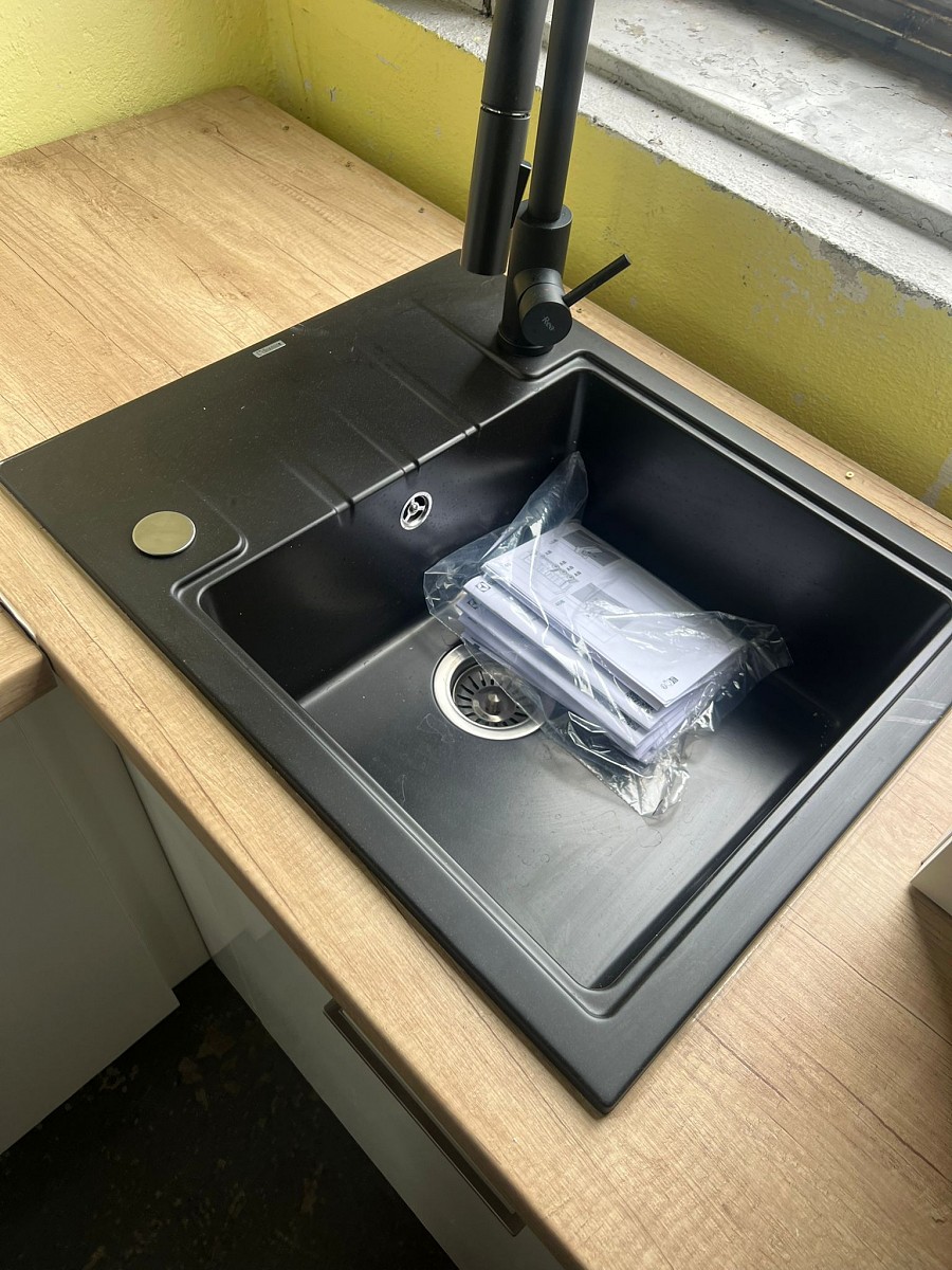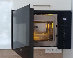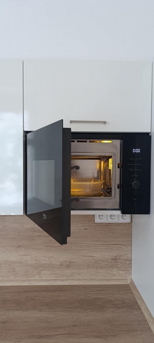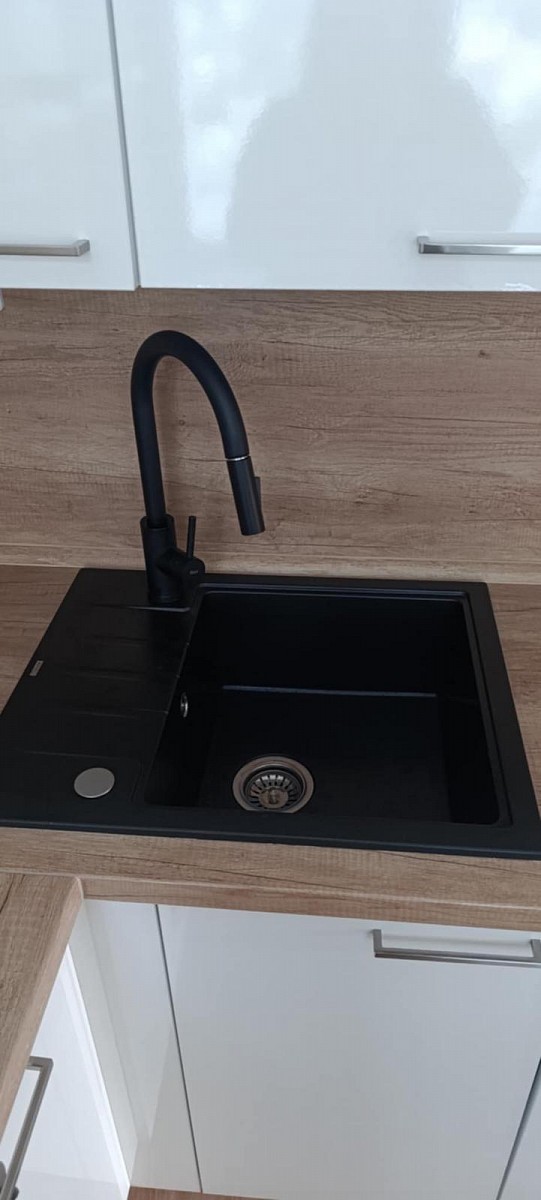 Mikrovlnná trouba, digestoř a dřez s baterií