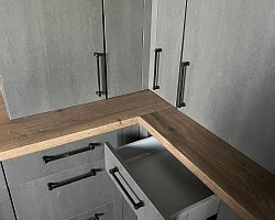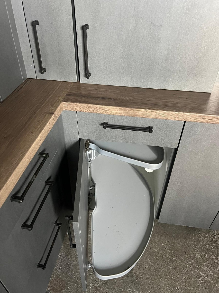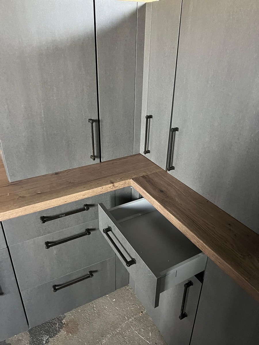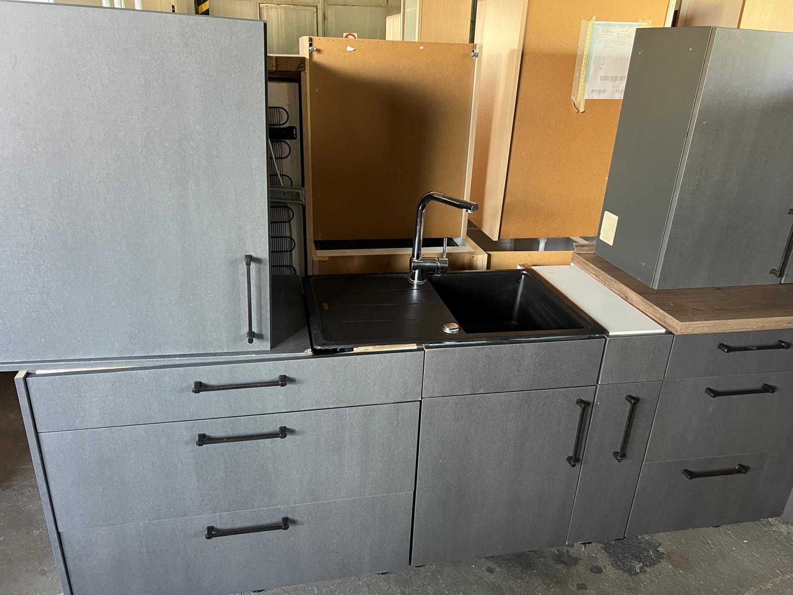 Šedá kuchyňká linka bez spotřebičů