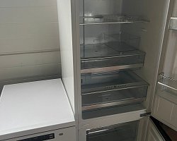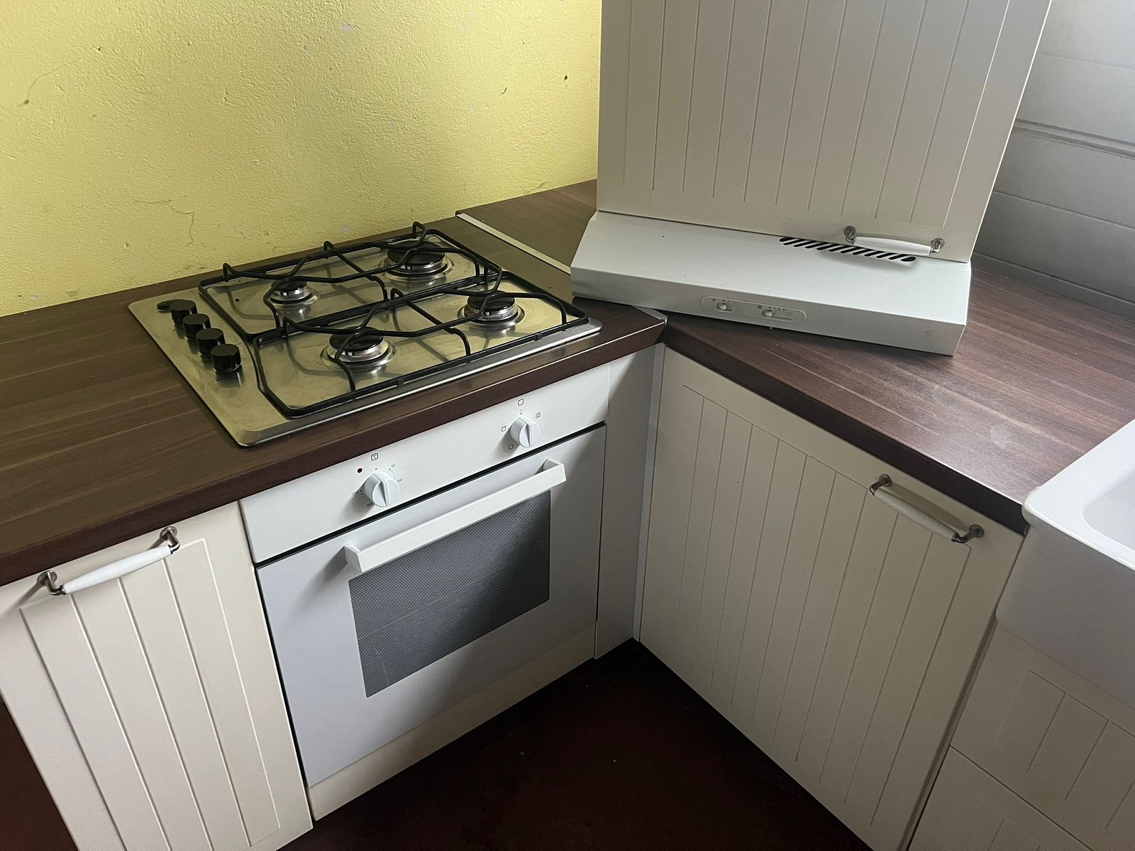 Součástí: Horkovzdušná trouba, plynová deska, myčka, digestoř, keramický dřez, baterie, lednice a mrazák
