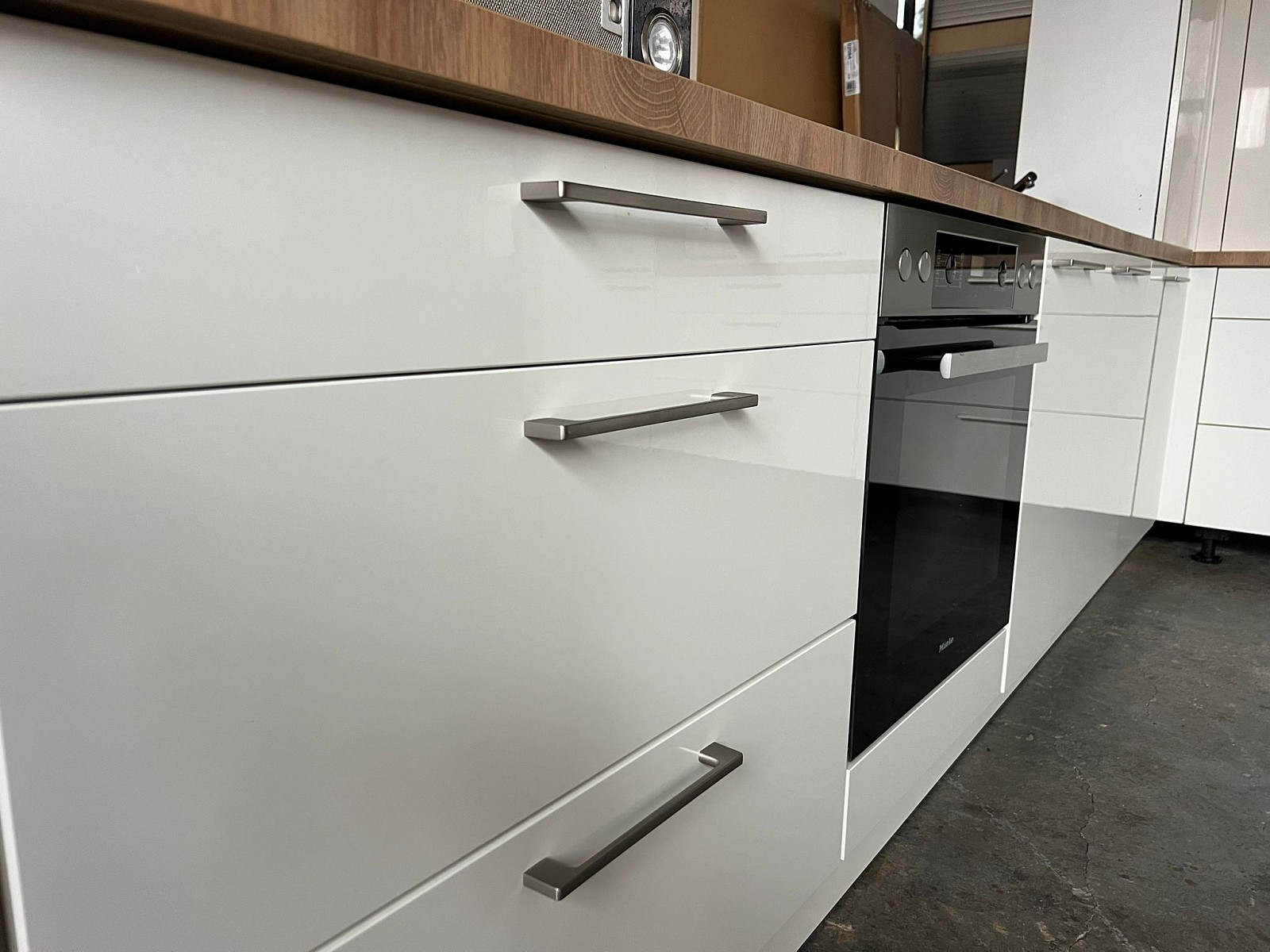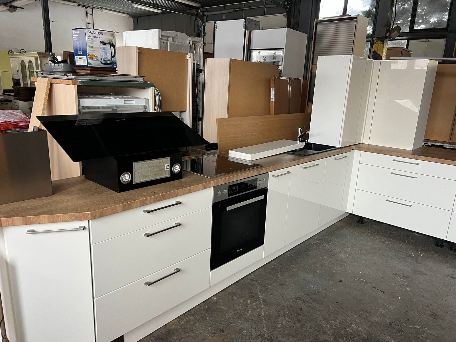 Krásná bílá kuchyňská linka v lesku se špičkovými spotřebiči zn. MIELE!