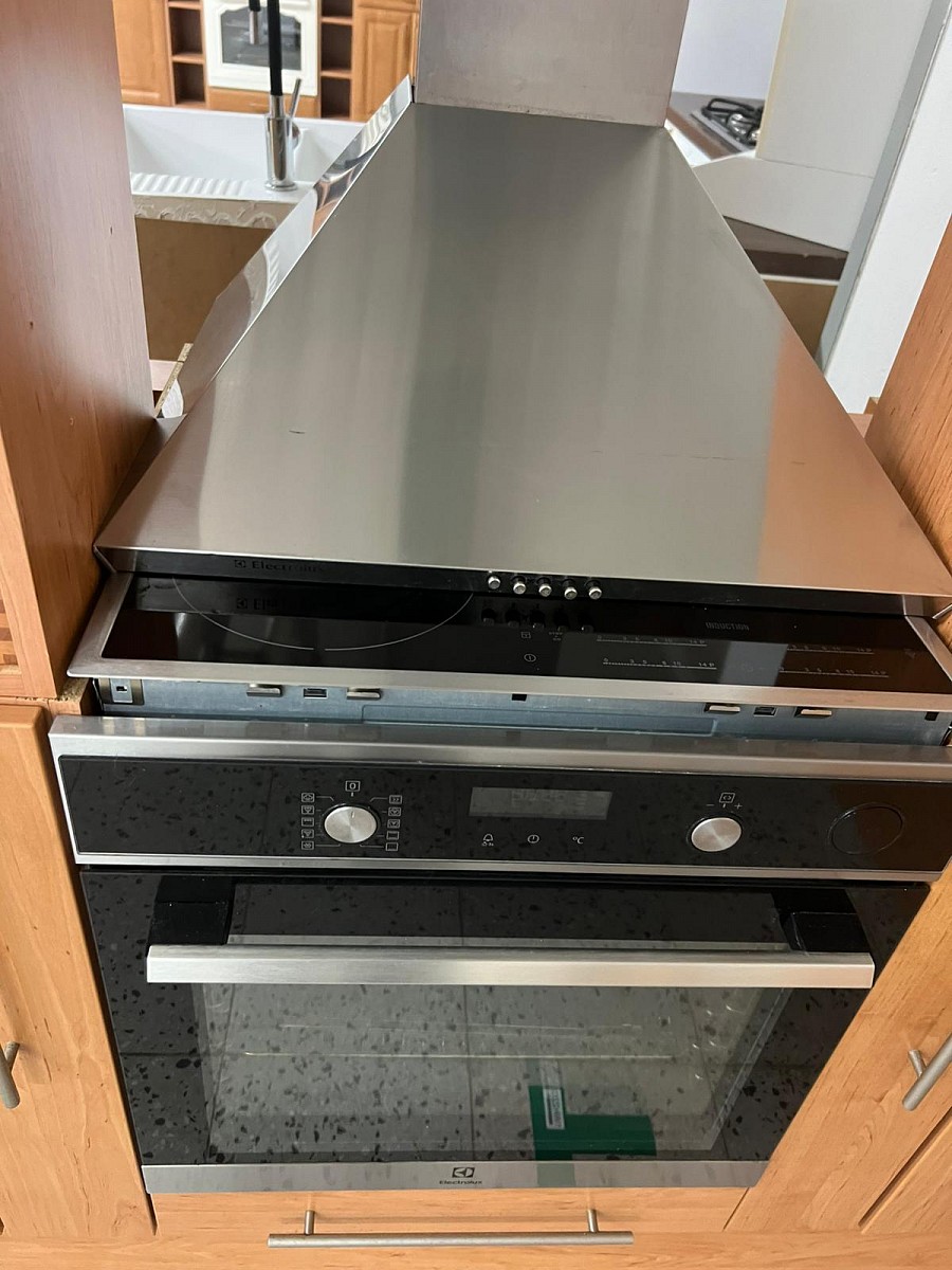 Součástí: Horkovzdušná trouba, indukční varná deska, digestoř, mikrovlnka zn. Whirlpool