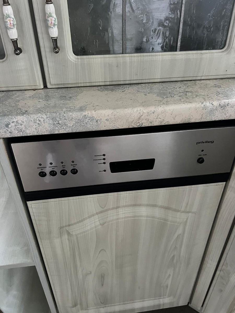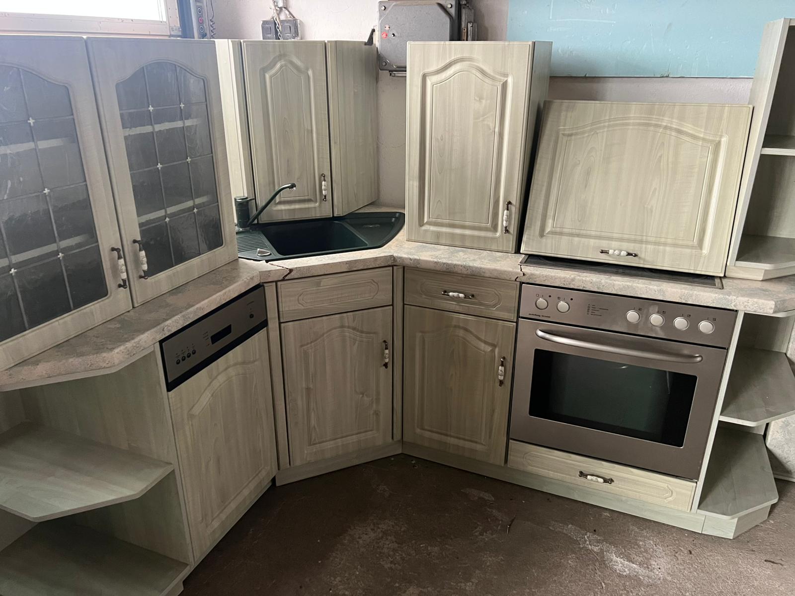 Součástí: Horkovzdušná trouba, sklokeramická deska, myčka, lednice, digestoř vše zn. Privileg dřez a baterie
