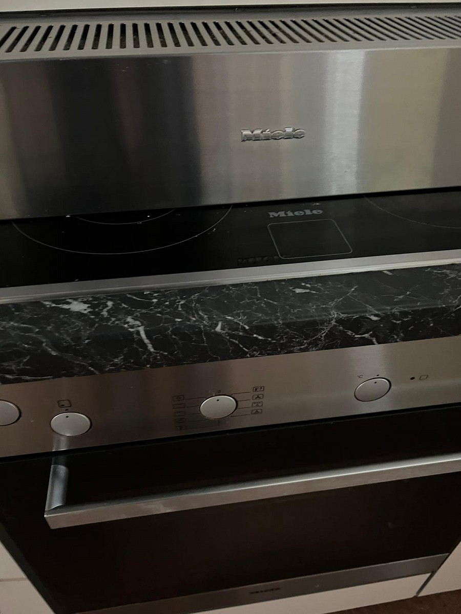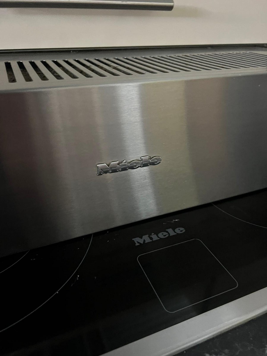 Světlá rovná kuchyňská linka se spotřebiči zn. MIELE