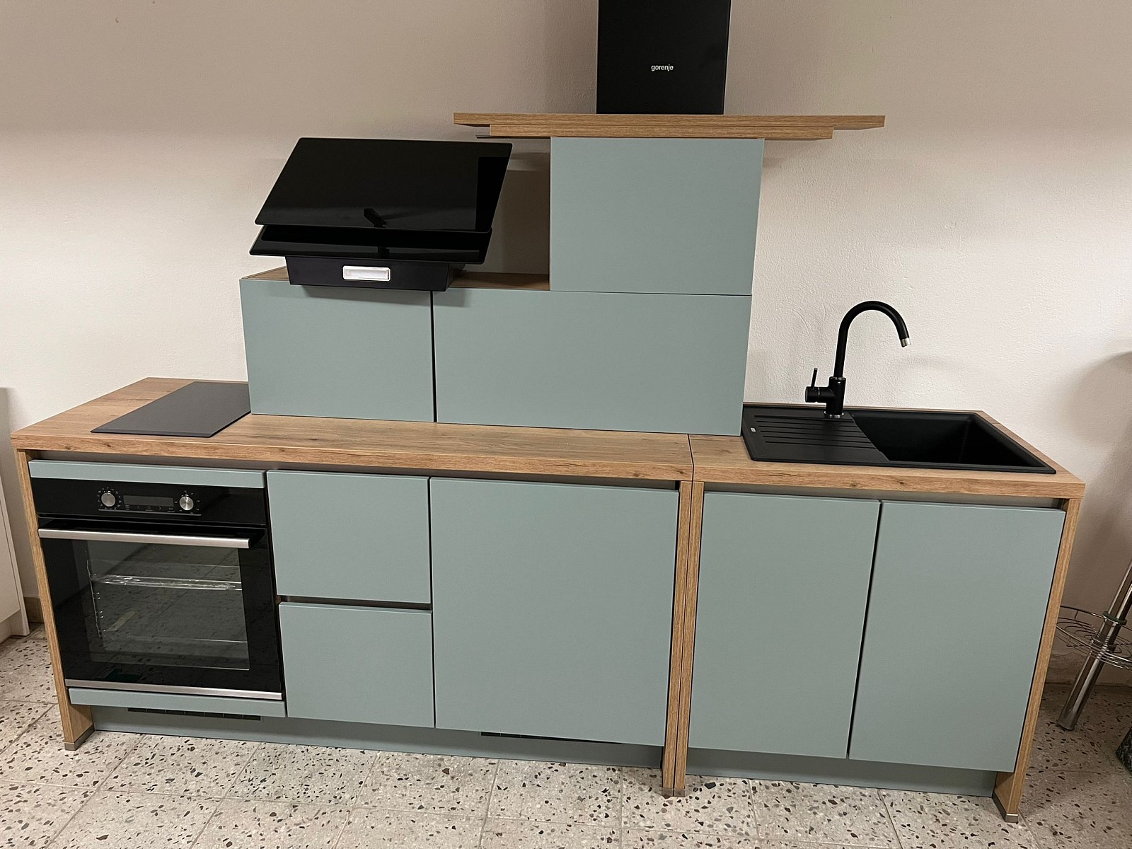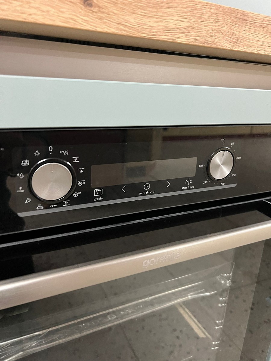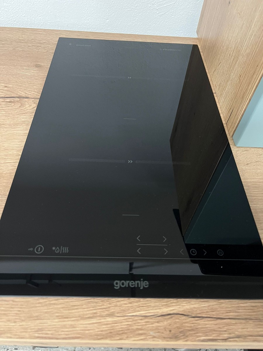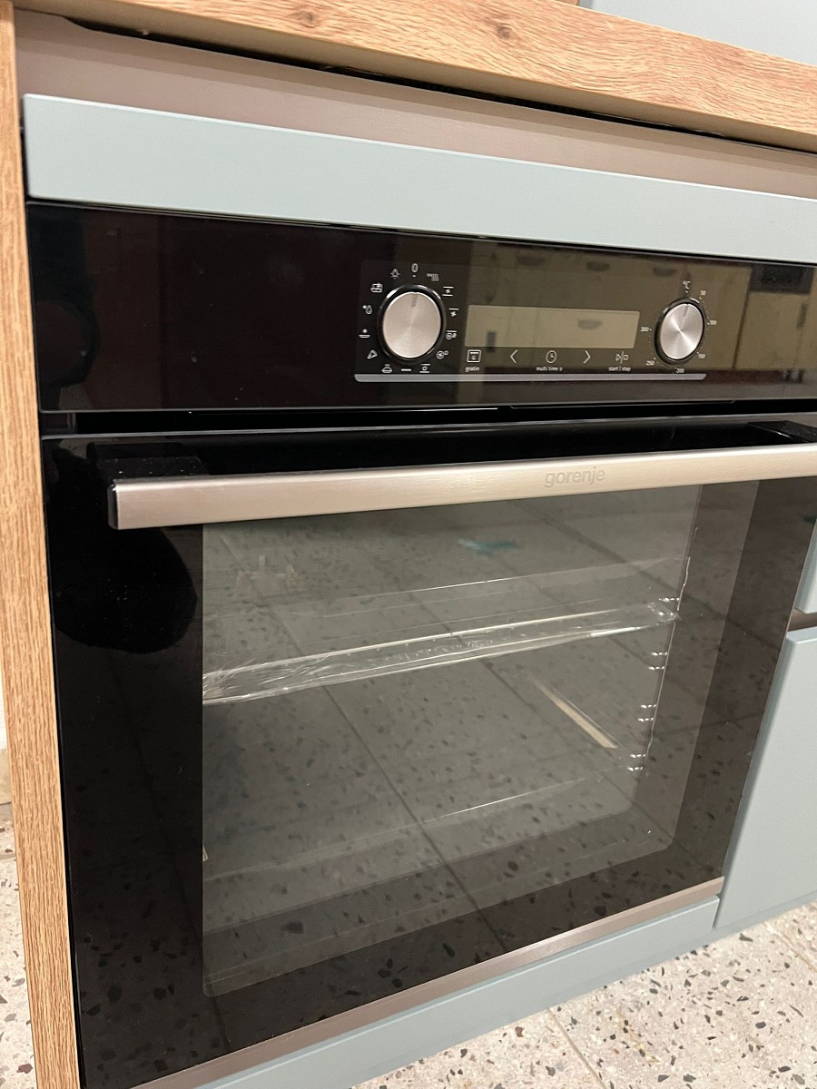 Spotřebiče: trouba GORENJE, indukční varná deska GORENJE, digestoř GORENJE, keramický dřez, baterie, lednice